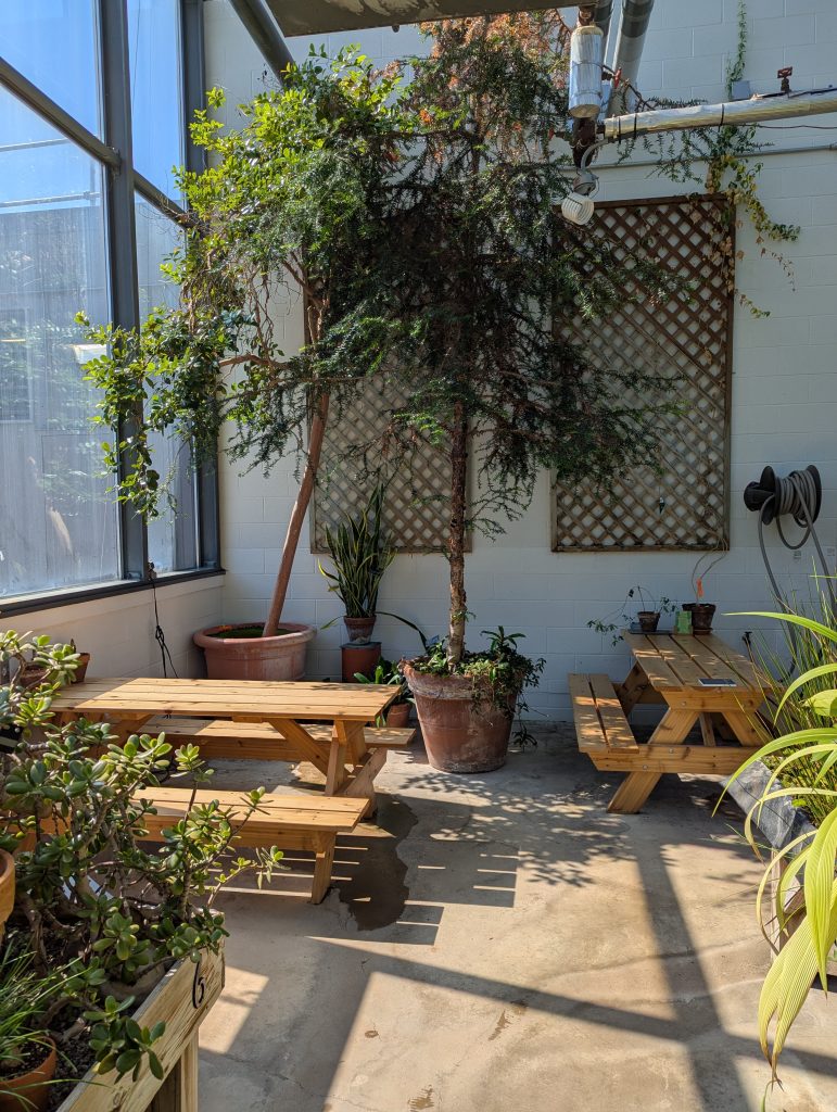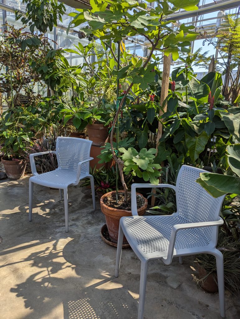 Part of what makes the greenhouse such a welcoming space for visitors is the variety of seating options available. Interested in visiting the greenhouse? Check out the photos below of our various seating options!