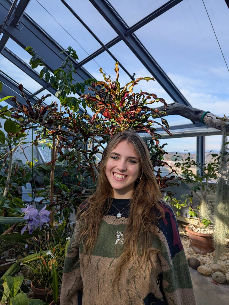 Capri (she/her) is a Biology major and Creative Writing minor from New Jersey. Capri began visiting the greenhouse soon after arriving at Bucknell as a first-year in the fall of 2022. It wasn’t long after her first visit to the greenhouse that Capri approached me about working here as a student employee. Capri is a Greenhouse Assistant and as such she waters plants, cleans up greenhouse debris, pots up plants, and assists with various special projects such as our annual holiday open house. Capri does wonderful work here in the greenhouse that is fueled by her passion for plants and a love for all the greenhouse provides for the Bucknell community.